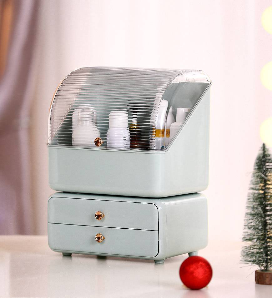 The makeup organizer box and the drawer are detachable. The box can hold makeup, cosmetics, perfume, skincare and more. The drawer can hold jewellery, lipstick and facial mask, etc.